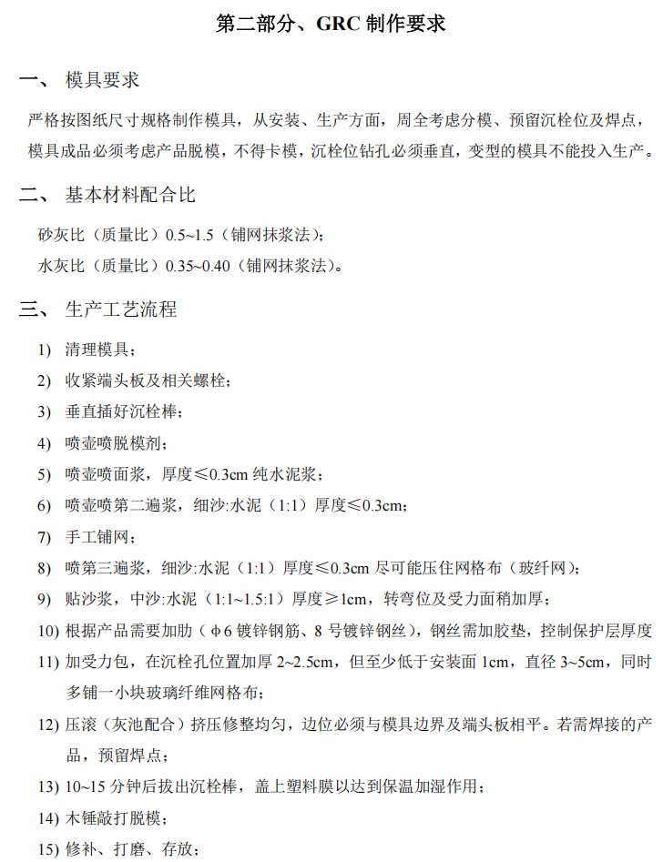 • GRC水泥構(gòu)件制作施工安裝流程